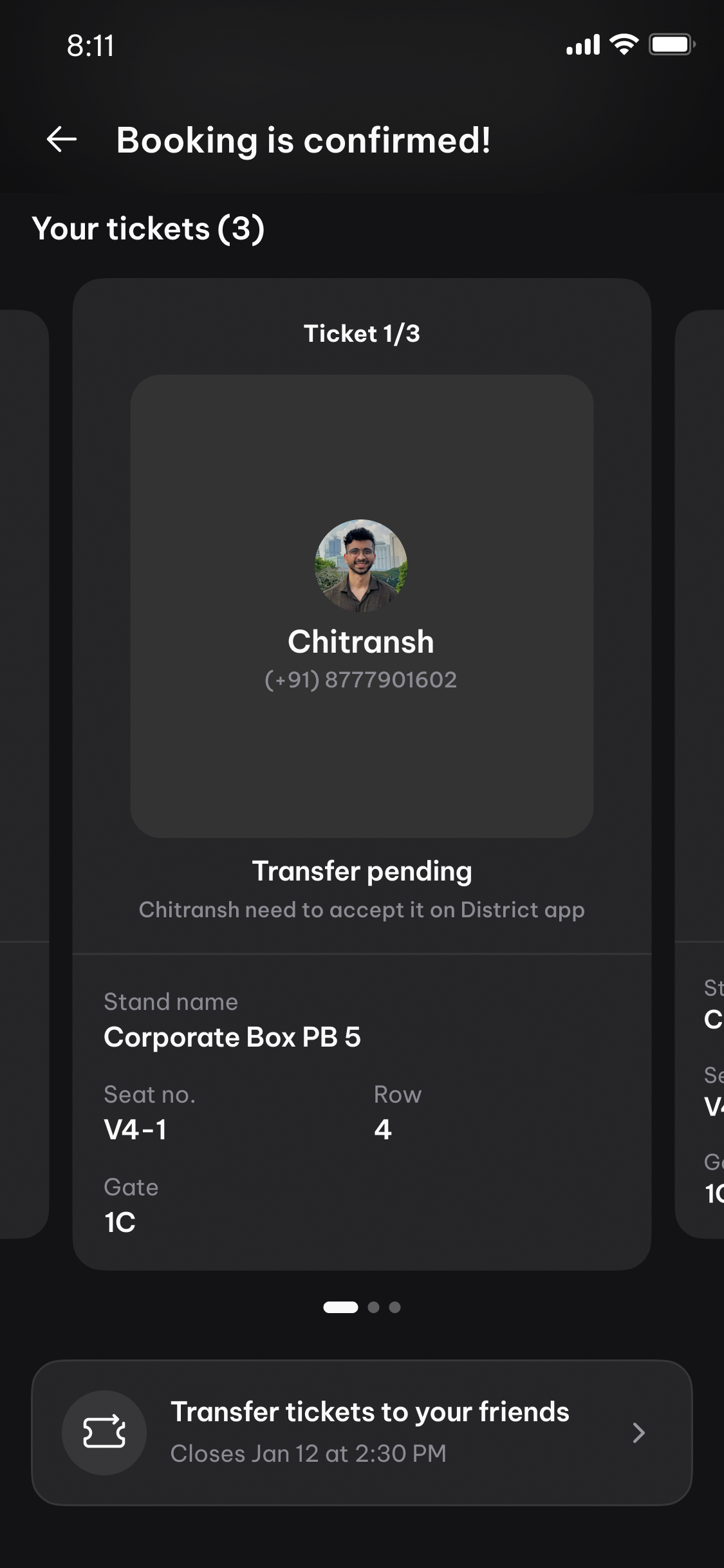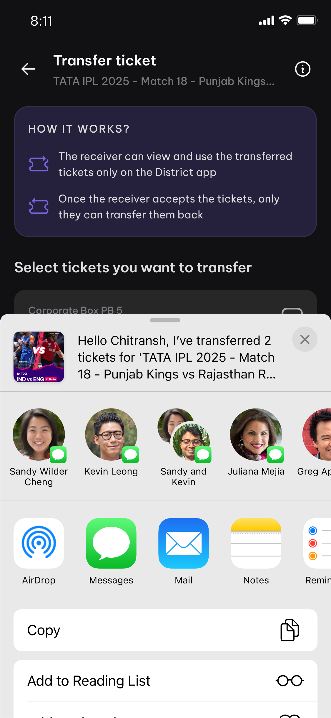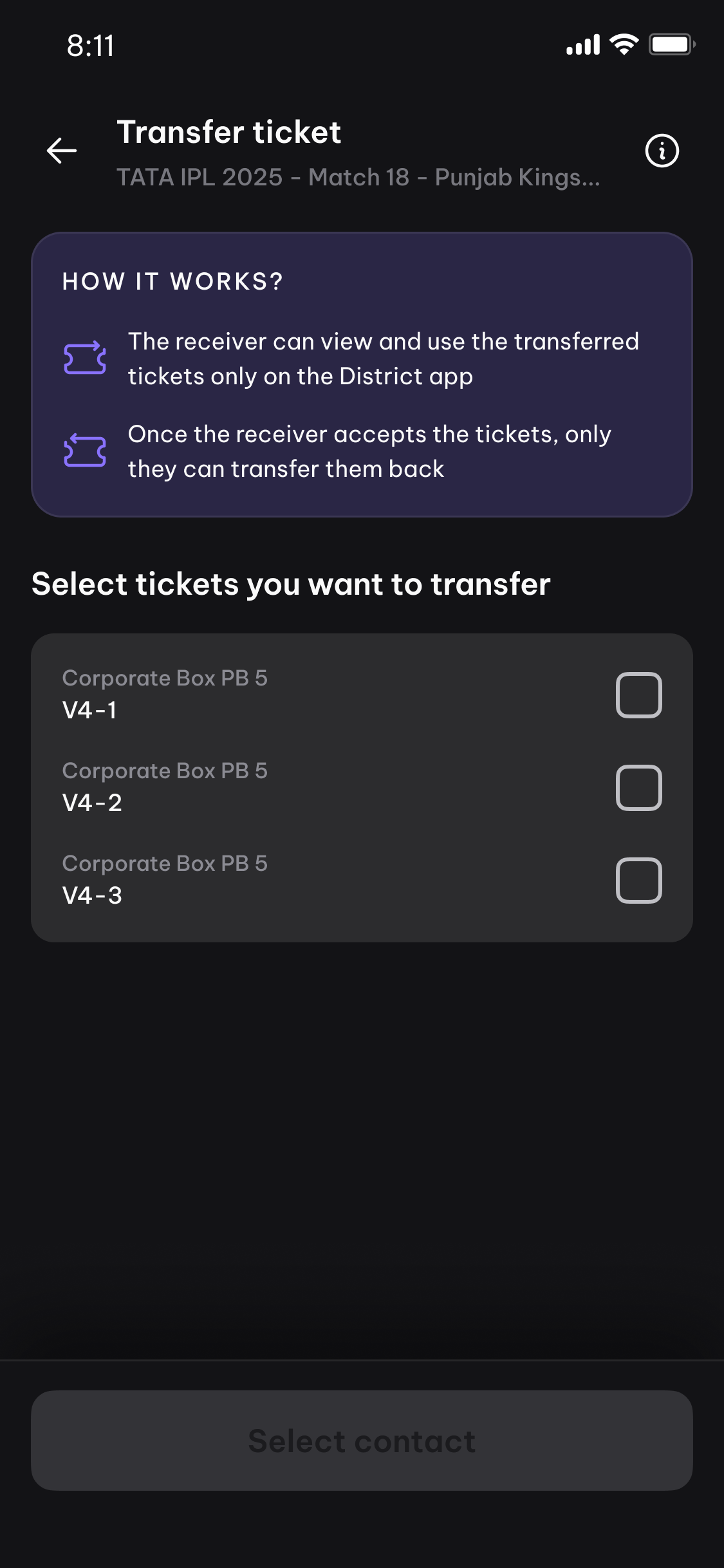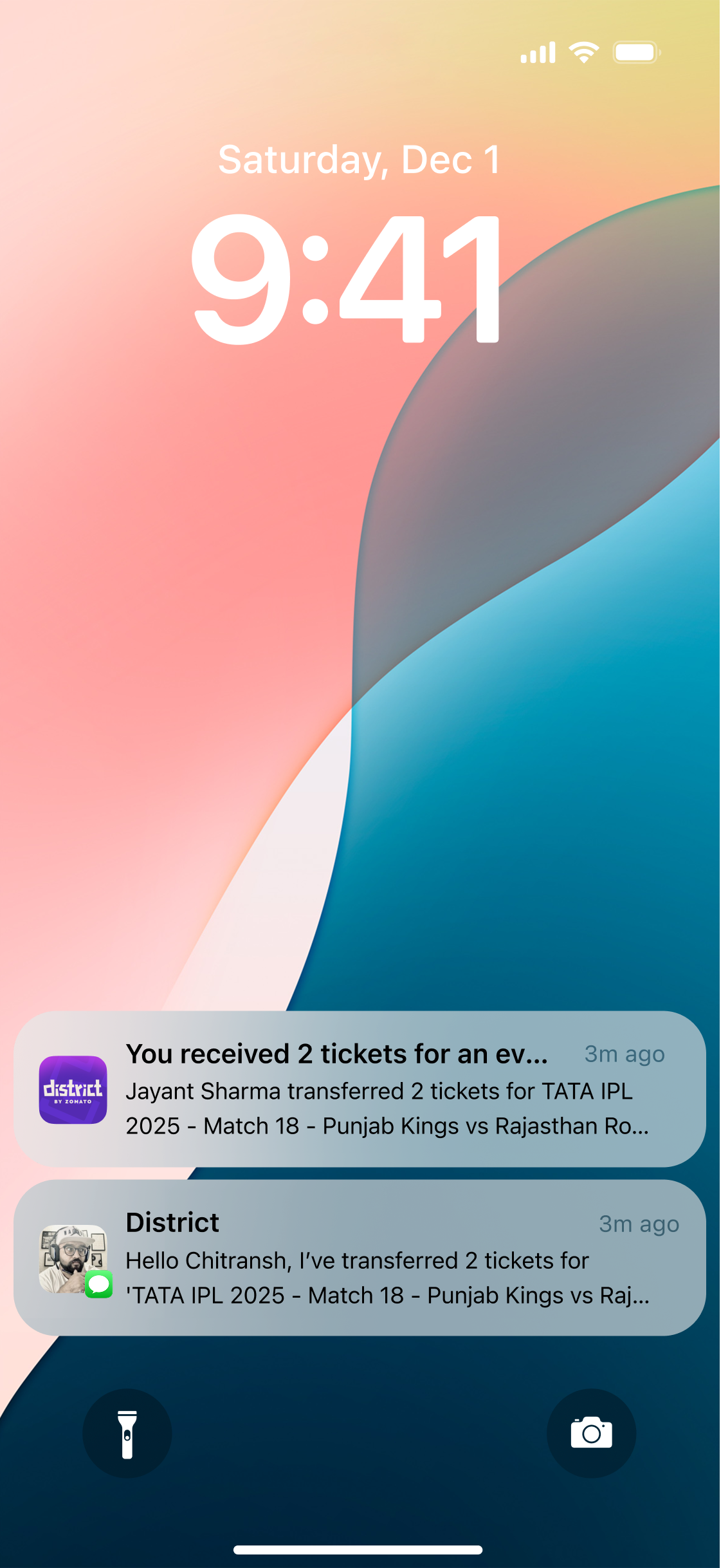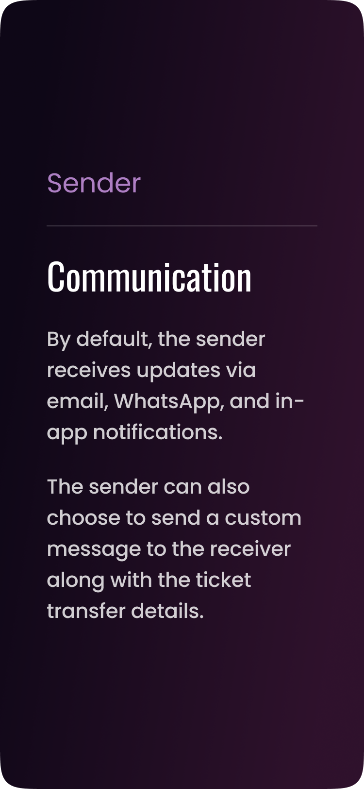 District allows users to seamlessly transfer event tickets to friends and family — whether plans change or attendees enter the venue separately. The challenge was to design a flow that feels instant and effortless, while still being secure, and transparent.