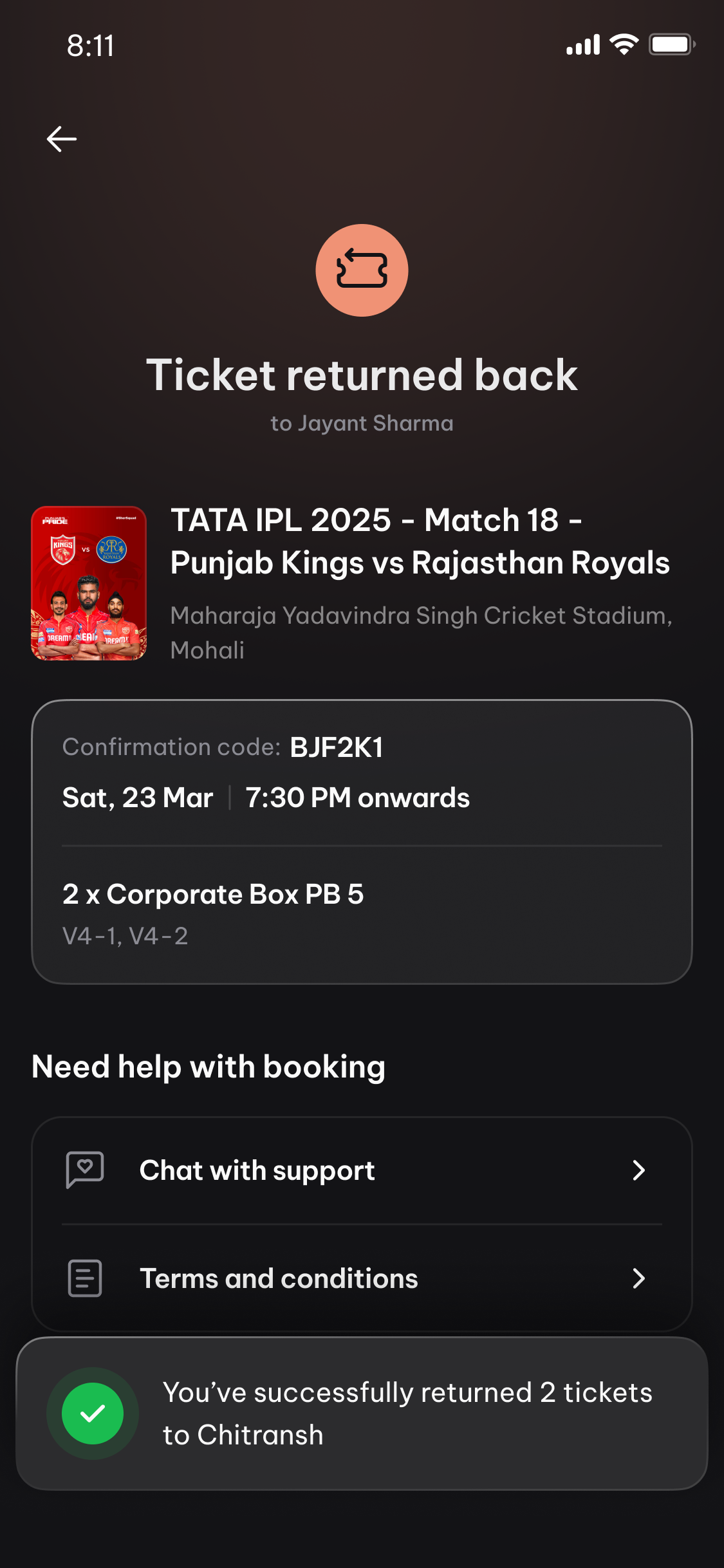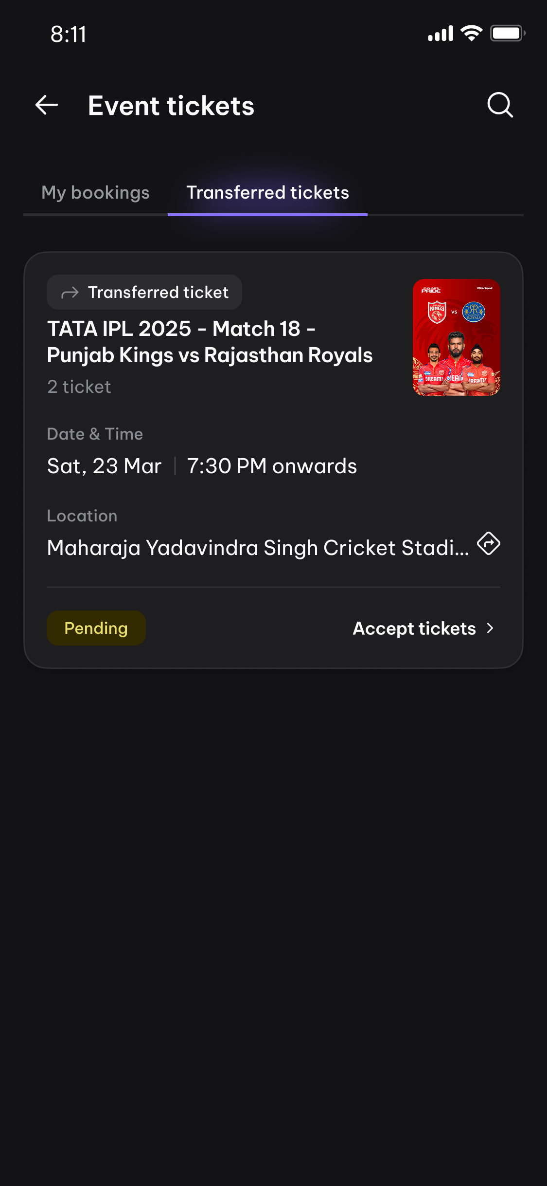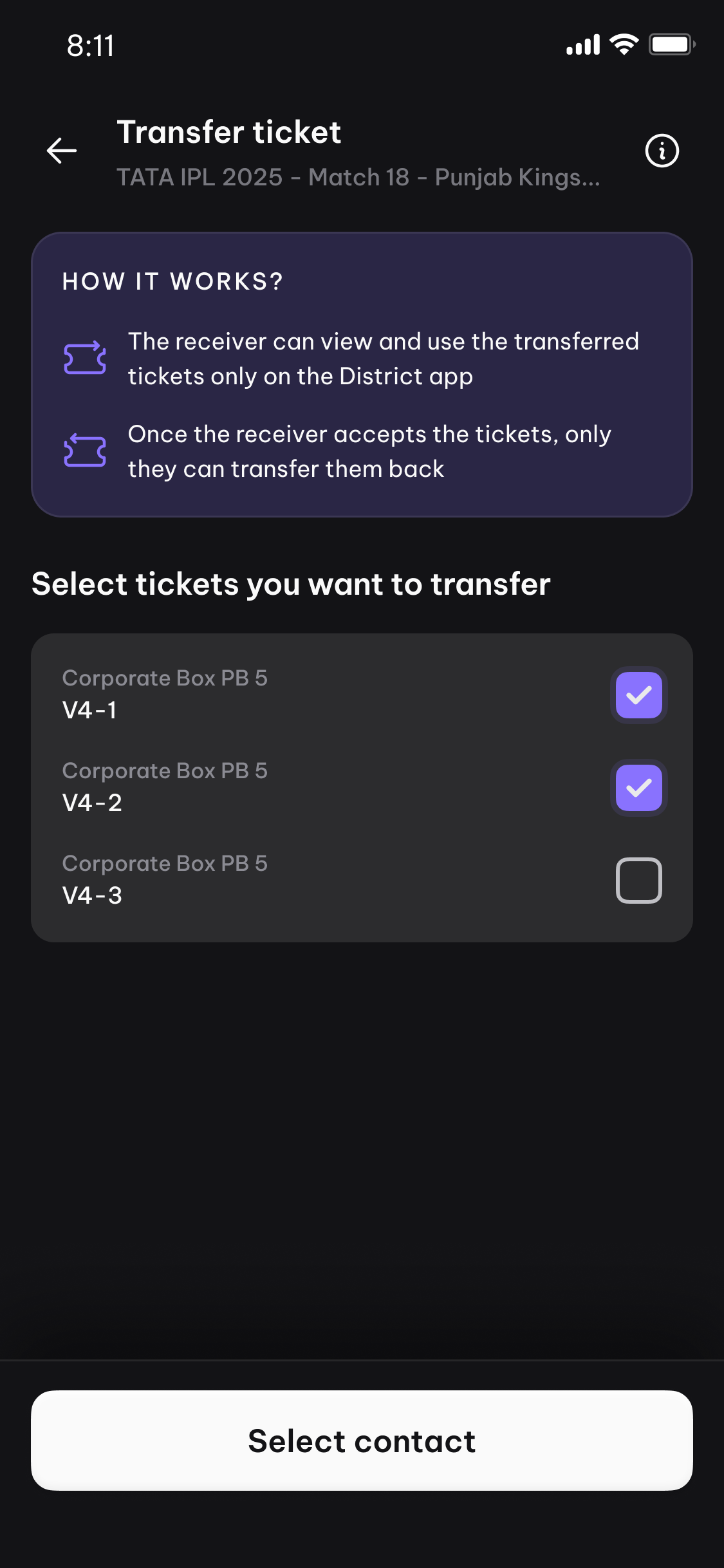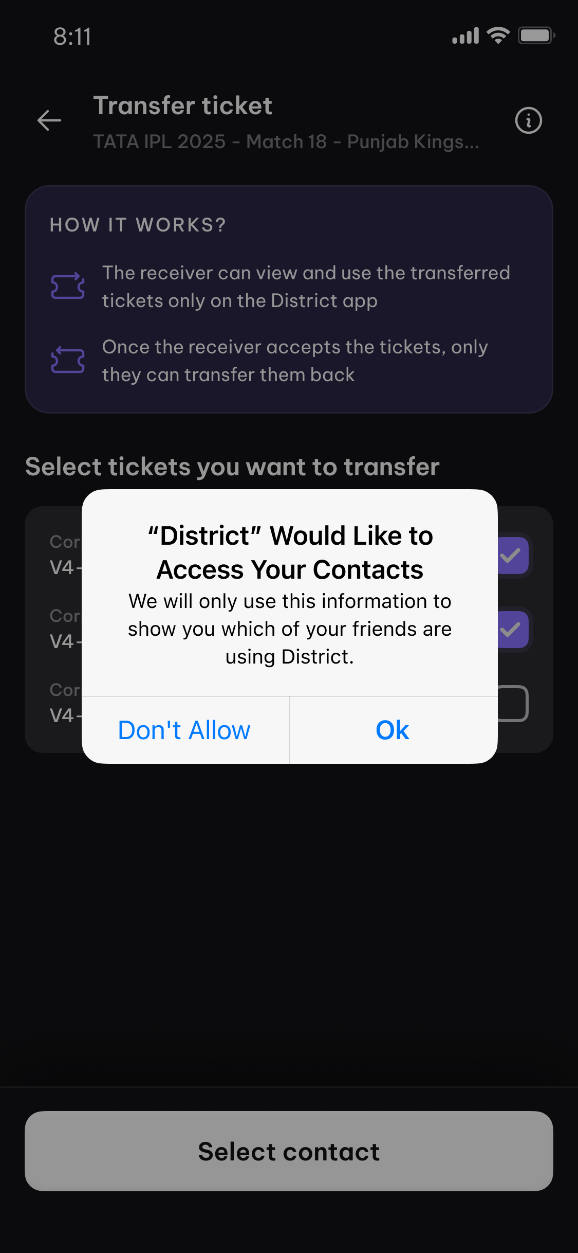 District allows users to seamlessly transfer event tickets to friends and family — whether plans change or attendees enter the venue separately. The challenge was to design a flow that feels instant and effortless, while still being secure, and transparent.